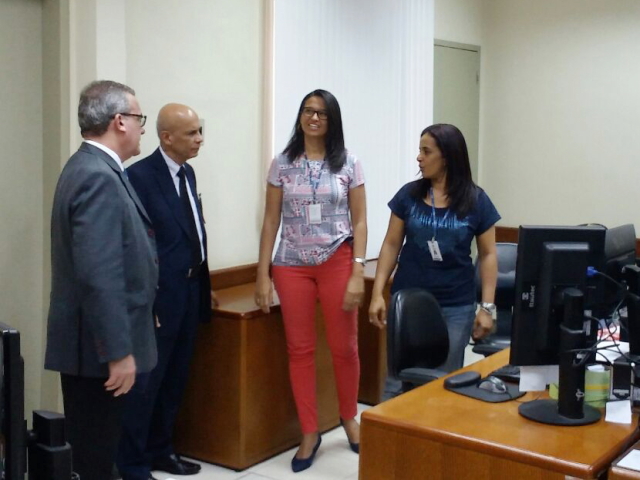 A segunda unidade visitada foi o Fórum Des. Epaminondas Silva de Andrade Lima, na Comarca de Lagarto, no centro-sul do Estado. O Juiz da Vara Criminal, Dr. Marcel Maia Montalvão, e o Supervisor do Fórum, Roque Lima Sarmento, receberam o Presidente do TJSE para demonstração da estrutura e serviços locais.