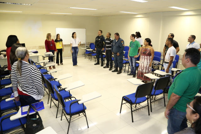 “É bem interessante porque proporciona uma construção: eles refletem sobre gênero, depois sobre como se dá a violência contra a mulher, suas características e a atuação do agente de segurança frente a essa violência. Temos uma metodologia interativa, com dinâmica de grupo, filmes, discussões, buscando tirar deles o conhecimento porque partimos do pressuposto que o conhecimento eles já têm, só precisa ser facilitada a reflexão”, explicou Sabrina Duarte, psicóloga da Coordenadoria da Mulher e uma das facilitadoras da capacitação.
