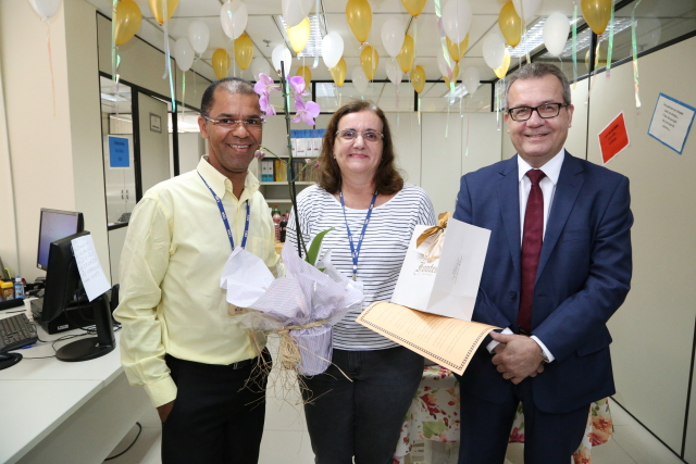 Durante a homenagem, a servidora recebeu um presente e uma orquídea dos colegas da Sefinor, além de uma Placa de Agradecimento do Presidente do TJSE, Des. Cezário Siqueira Neto. “É uma grande honra participar desse momento, pois vejo o reconhecimento dos colegas de Eucaristia, que, com certeza, é uma pessoa especial. Fique orgulhosa dos mais de 30 anos de serviços prestados ao Judiciário e de ter colaborado para o TJSE ser o que ele é hoje. O servidor não é valorizado apenas com o salário, que é essencial, mas também com demonstrações de carinho e reconhecimento. É um novo ciclo de outras atividades, a vida continua, só que agora de uma forma mais prazerosa”, comentou o magistrado, afirmando que a valorização dos servidores aposentados é um dos focos da sua gestão.