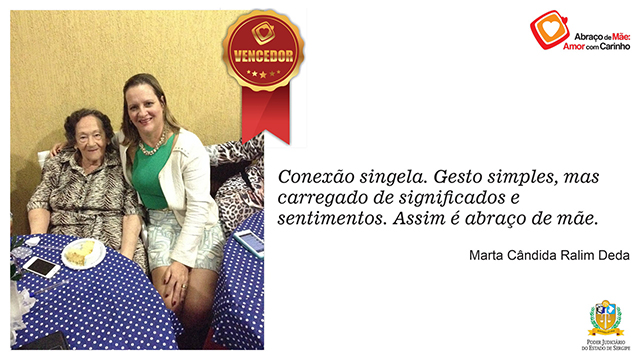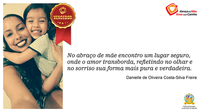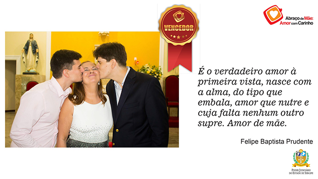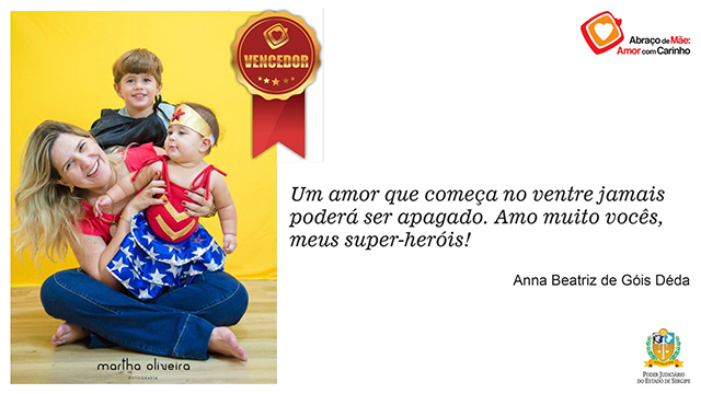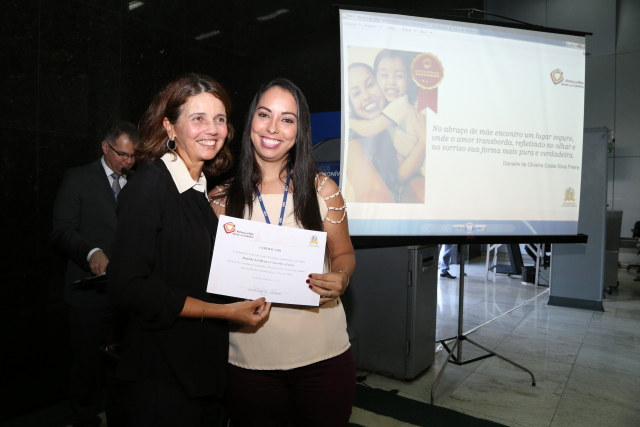 Logo após a palestra, houve a entrega dos certificados para os vencedores da campanha "Abraço de mãe: amor com carinho’, que escolheu as melhores fotos e frases sobre o tema. Uma das vencedoras foi a técnica judiciária Anna Beatriz de Góis Déda, mãe de Maria Luisa e Davi. “Quis participar porque acho que sou a mãe mais babona do mundo e vi na campanha um momento de integração com os servidores e humanização na gestão”, comentou Anna Beatriz.